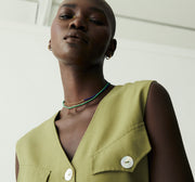 Double Strand Beaded Necklace - Cobalt, Apple Green & Gold