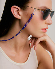 Our Handbeaded Sunglass Strand is crafted from high quality glass beads and strong cotton cord. This particular piece was handbeaded by Thokozane Mathe, one of our esteemed community mentors. Look closely and you’ll spot a delicate chain of daisies, intricately stitched into the design.